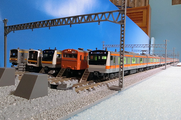 あ... E233系 0番台のスカートが手前に転がっていますが,これは気にしない方向で...